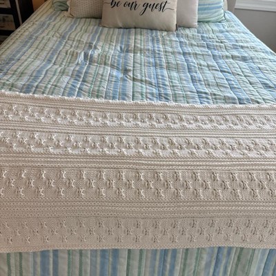 [This review was collected as part of a promotion.] This blanket is beautiful and such a classic! The white makes it go with any sort of decor that someone would have. I love how soft it is in the pattern is very neutral and perfect for over the winter. It definitely has a handcrafted feel and is so sweet. It’s a great size and I’m very excited to add this to my decor.