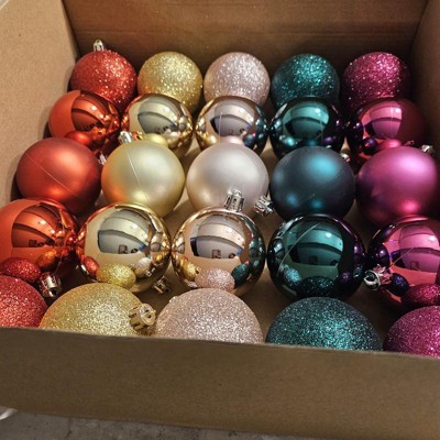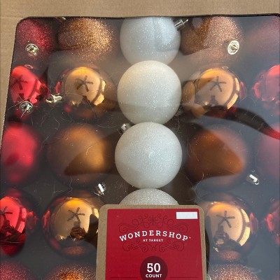 Love these plastic ornaments, they look beautiful and are durable. However, the set I thought was supposed to be red, white, and silver but I received red, white, and copper. I thought I had received the wrong box so I reached out to target and they replaced it but the new box was exactly the same so I think it's a labeling error. Target customer service was great and the redelivery time was very quick, I kept my second order.