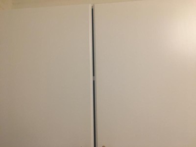 Solid cabinet with a 2" gap b/w doors . For $170 you'd expect more.