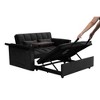 This velvet convertible sofa bed brings three pieces of furniture in one sleek package. By day it serves as a stylish sofa with plush cushions and hidden storage beneath the seat. By night the adjustable backrest folds flat to create a comfortable sleeper for overnight guests. A secret side table pulls out from the armrest offering space for laptop snacks or coffee while the built in USB port keeps devices charged. Premium velvet fabric resists wear and two included pillows add extra comfort.