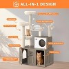 - 3-in-1 design with litter box enclosure, cat tower, and play zone