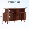 55'' Fluted Mid Century Modern Turntable Cabinet with Vinyl Storage, Large Round Record Player Stand with Charging Station and Display Shelf, Arched Wood Record Player Table for Living Room