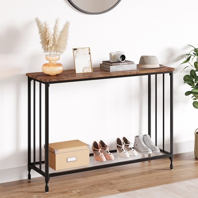 55" Long Console Table, 3-Tier Entryway Table, Sofa Table Behind Couch, Industrial Entry Table, Rectangular Sofa Table, for Hallway, Bedroom, Brown