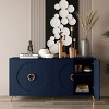 Transform your space with this modern sideboard buffet cabinet, blending sleek aesthetics with everyday practicality. The minimalist silhouette and circular door accents create a sophisticated focal point, making this storage console perfect for dining rooms, entryways, or living areas. Four spacious doors open to reveal adjustable shelves, allowing you to customize storage for everything from tableware and books to seasonal décor and daily essentials. The smooth lacquered finish and metallic hardware add a touch of luxury, while sturdy engineered wood construction and solid metal legs ensure long-lasting strength and stability.