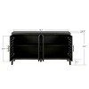 The symmetrical, hollow-carved lattice doors not only offer a decorative flair but also provide ventilation for items inside perfect for tableware, books, or collectibles. Behind its four doors, you’ll find two spacious compartments, each with an adjustable shelf that lets you customize storage for items of all sizes.