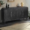 Bring timeless charm and practical functionality into your home with this 59'' farmhouse-style sideboard. Designed with curved arc countertops and complemented by large wooden handles, this cabinet blends vintage aesthetics with everyday convenience. The vertical wood grain carving on the door panels adds dimension and character, while the 180-degree opening side doors offer full access to spacious storage compartments. Built from solid wood and MDF, the structure is sturdy and long-lasting, with a countertop that supports up to 220 lbs and adjustable interior shelves supporting up to 50 lbs each. Ideal for storing kitchenware, books, tableware, or decor, this sideboard fits seamlessly into dining rooms, kitchens, or living spaces. Product dimensions: 59" W x 15.55" D x 32.28" H. Compartment interior height: approx. 23" H. Ground clearance: approx. 6.29". Easy to assemble and built with vintage craftsmanship that enhances any home style.