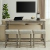 Constructed with a solid wood frame and durable MDF tabletop, this set is designed for daily use. The tabletop is scratch-resistant, heat-resistant, and splash-proof, ensuring it stays beautiful through family dinners or your next get-together. Three linen-upholstered stools tuck neatly under the table to save space and keep your area tidy, while each sturdy stool offers comfortable, supportive seating for guests or quick snacks.