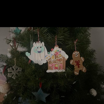 I wanted to love this so bad… my kids and grandkids were really excited to do this activity together. The gingerbread man was missing stickers, the double sided sticky to attach the fuzz balls didn’t work, and the sticker to hold the string onto the back failed catastrophically causing the ornaments to fall off the tree in a couple minutes. These are so cute and if they used a hole to tie the string instead of a foam sticker it would have been much better. My son who picked the gingerbread man was very bummed that he couldn’t complete his ornament. This was ALMOST fantastic.