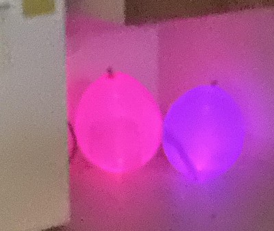 I don’t know what else to say but WOW. I can’t believe these balloons are still glowing. I blew them up the night of the 28th and today is the 31st and they are still glowing! Nothing to look at in the daytime but the glow is worth it.