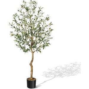 - 【Lifelike Details】Our faux olive tree boasts a realistic trunk, natural texture tree forks, adjustable branch and plump olive. 1. Green leaves and plump olives won't fade. 2.Multiple colors of fruits, 3. Adjustable branch with iron wire can be angled, 4. Realistic tree trunk made from polyester avoids mold. 5. Stable black pot filled with cement keeps the tree upright. 6. Natural texture tree forks which imitate the appearance of a live olive tree are vivid.