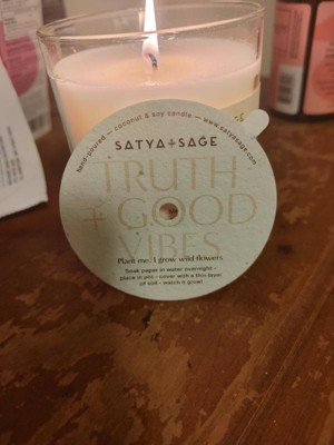 5oz Blessed Candle - Satya + Sage: Coconut & Soy Wax Blend, Herb Scented, Glass Jar with Lid, 29hr Burn Time