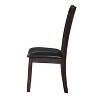 - Chair has contemporary ladderback design and faux leather upholstered seat for added comfort and cleanability