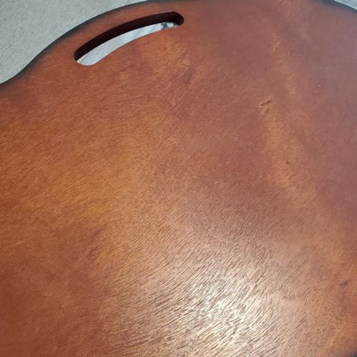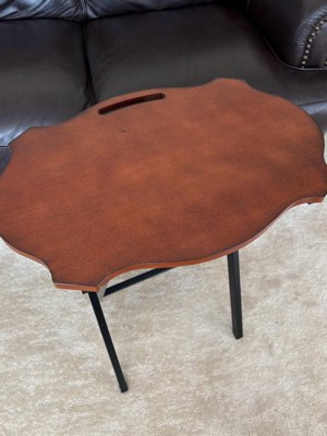 This tray table has a little bit bigger surface area that other tray tables and works very well for a desk since we are now working and schooling from home. The contrast from the hazelnut and white finishes are very complementing to any home decor.
