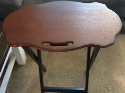 [This review was collected as part of a promotion.] Nice quality tables! These are very nice for side tables or to use when you need extra tables for company or even dinner in the livingroom! It's made from very nice sturdy wood and the finish is gorgeous! Each table folds nicely and can be stored on the wooden stand which takes up very little space. * I received this complimentary in exchange for my honest review