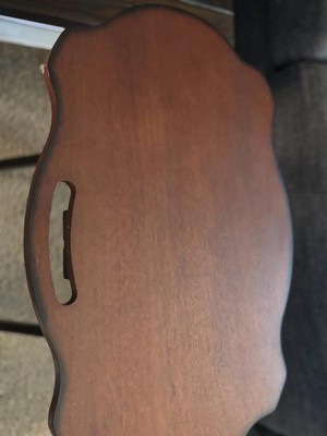 This tray table has a little bit bigger surface area that other tray tables and works very well for a desk since we are now working and schooling from home. The contrast from the hazelnut and white finishes are very complementing to any home decor.