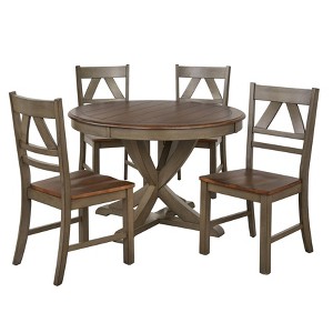 Buylateral 5pc Vintner Farmhouse Solid Wood Pedestal Dining Set Gray