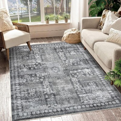 Washable Vintage Style Area Rug, Classic Decorative Non-Slip Foldable Carpet for Entryway, Bedroom