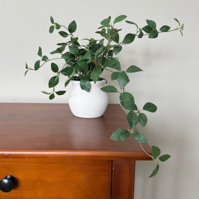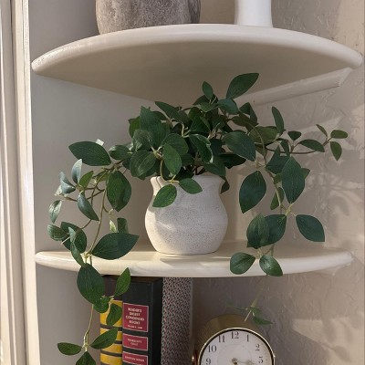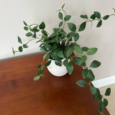 This is a nice artificial dark trailing leaf plant from Threshold. I love the trailing effect the plant has which makes it perfect for shelves or bookcases. This arrangement is on the smaller side so smaller shelves is ideal or paired with other decor. The white ceramic pot is good and a nice quality.