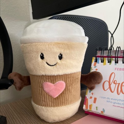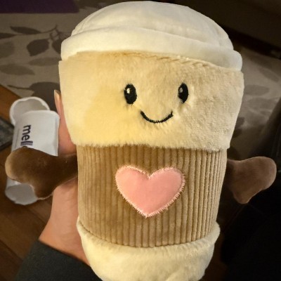 I’m not a stuffed animal person BUT when I saw this I HAD to get it as I love a good latte. He’s absolutely adorable and brings me lots of joy when I see him just sitting there. Very soft, just enough stuffing to sit up right.