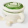 - Designed as matcha latte in mug with smiling face and feet