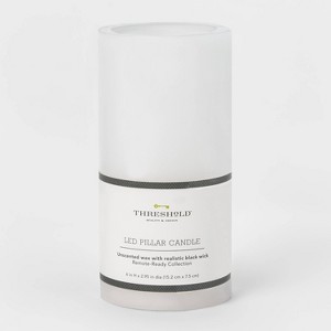 6" x 3" LED Flameless Black Wick Candle White - Threshold™: Realistic Faux Pillar, Wax Exterior, Battery Operated
