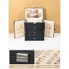 - The large jewelry box includes earring boards, ring card slots, watch pillows and large drawers for glasses storage. Watches, necklaces, earrings, brooches, hair accessories, sunglasses, etc. can all be stored independently. Some partition boards can be moved and disassembled, and the flexible design allows you to adjust it according to your personal needs.