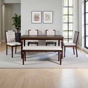 6-Piece Dining Set with Rectangular Table, Tufted Chairs and Bench