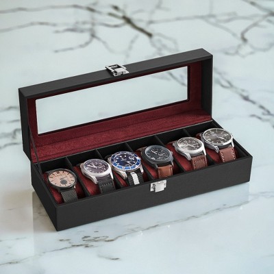 6-Slot Watch Box, Large Glass Lid Watch Organizer