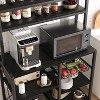 - 【2 AC Outlets & Multipurpose】No more hunting for power sockets! This rack has 2 AC outlets to power 2 small appliances at once, like a coffee maker and toaster. Its 35.46" L x 15.7" D tabletop fits a microwave or makes a mini coffee bar. It also works as a snack rack or spice organizer, keeping kitchen items tidy and simplifying daily cooking.