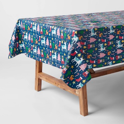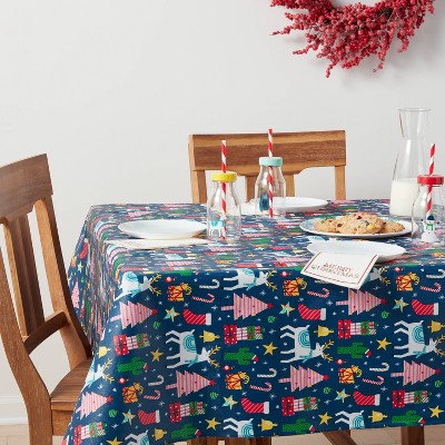 Bring merry vibes to your dining space with the Festive Icons Tablecloth from Wondershop™. Adorned with colorful Christmas-inspired prints — from Christmas trees, candy canes, stockings and Santa to reindeers, jingle bells and more — this decorative tablecloth adds festive cheer to your Christmas family sit-down meals or get-togethers, while protecting your table from spills, stains, messes and scratches. Simply coordinate it with Christmas-themed tableware, drinkware, napkins and other dining accessories to complete the festive look.