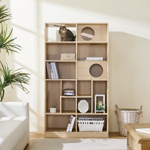 63.5" Tall Bookcase with Storage, Furniture Style Cat Tree Tower, Freestanding Display Cat Tree, Multifunctional Open Bookshelf for Home, Brown