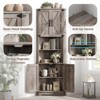This 14.5" x 24.5" x 68.9" tall corner cabinet maximizes vertical space with 6 roomy shelves (3 height-adjustable), ideal for organizing kitchenware, decor, or pantry items without ruining your room’s look. It stays stable via an anti-tip wall anchor and strong base, keeping kids and pets safe. Featuring an iconic barn door design and neutral color, it blends with kitchens/living rooms—doubling as storage and decor. Made of durable, scratch-resistant, waterproof engineered wood, its triangular shape fits corners/entryways. Plus, step-by-step instructions make assembly easy.