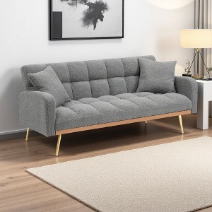 69" Convertible Teddy Fabric Sofa Bed with Solid Wood Frame