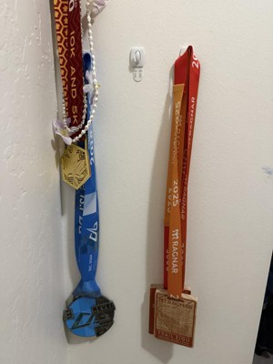 [This review was collected as part of a promotion.] I have some medals from some half marathons and Ragnar races I’ve run and wanted to display them somewhere. I found the perfect place in my closet and these command hooks hold them perfectly. I was worried the medals might be too heavy, but it’s been a month and they’re still holding strong!