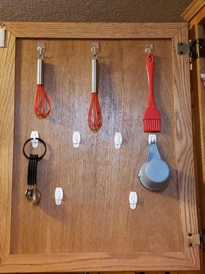 [This review was collected as part of a promotion.] These are so helpful in the kitchen! My cabinets are white and so these are almost invisible when I open my doors. I hang small things that get "lost" in my drawers, etc. and instead of having to rummage all around, I just open my doors and here they are hanging and waiting for me!! YES