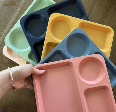 I was updating some of the plates we use for the kids and decided to try these trays. My kids love them! It kind of feels like a school lunch, but at home and more fun. :) The colors are pretty and modern. It’s been fun for them to make their meals and fill up the different spaces creatively. They wash really well. We have used them for months and haven’t had any problems with them.