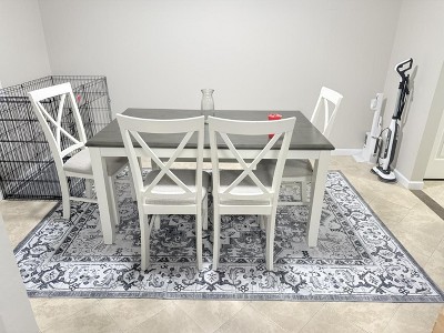 I absolutely love this dining table set!! exactly what I was looking for! I was skeptical about getting this big of a furniture from Target but I'm so glad I did!! The seats are so comfortable and with the bench, we pushed it up against the wall but can slide the table out for additional seating! Love the roomy storage area under the bench as well! Everything feels sturdy and well made. However, some of the predrilled holes were not great and we couldn't get one screw into the seat/back...luckily we improvised and drilled a nail into it for now. It created an uneven wobble but I put 2 furniture moving covers on that leg and it's even and feels sturdy now. That chair could have been made a little better but everything else was fine! I also got it on sale, and with my red card, got that extra 5% so I'm a happy customer :)