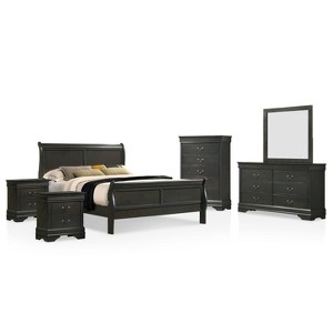 Simplicity and elegance pair to perfection in this impressive wood constructed six-piece bedroom set in gray finish. Offering a bed, two nightstands, a chest, and a dresser and mirror, the set features a coordinating finish that highlights graceful curves on the classic sleigh bed design. Delivering an understated aesthetic to your bedroom, the set offers plenty of drawer storage that's ideal for keeping clothing, linens, and accessories tucked away. A mirror on the dresser completes the set with aplomb.