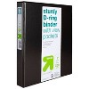 up&up Durable Binders feature clear view covers and spines for quick and easy binder customization. 1 inch binder holds 220 sheets. Back mounted D-rings allow for easy reading and page turning. Binders are designed with an extra durable hinge and are made of custom formulated, PVC free polypropylene. Polypropylene binders are more eco friendly than vinyl binders and last up to 10X longer. Four stacked interior pockets hold extra sheets and are clear so you can easily identify items. 6 Pack; Black.