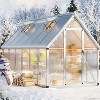 - Premium PC Panels: Built for lasting performance, the greenhouse features nearly unbreakable polycarbonate panels with 70% light transparency, promoting optimal plant growth while blocking over 99.9% of UV rays. Ideal for backyards, terraces, or gardens, it provides ample space for gardening enthusiasts.