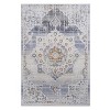 6x9 ft medallion rug crafted from stain-resistant synthetic material. Non-shedding construction. Kid/pet-friendly for household use. Available in multiple sizes. Easy maintenance with vacuuming.