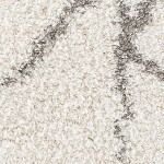 Beautiful plush cream rug with gray design. Rug does not give off lint. Great purchase!