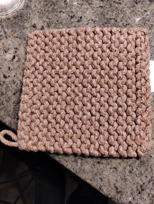 Cool crochet look pot holder/trivet for hot dishes. Nice and thick to keep hot dishes from touching surfaces. I love that it's big enough for my pans and I don't have to worry about my countertops or table when serving hot food.