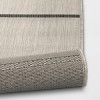 Cover your flooring in style with this Modern Linear Geo Rectangular Woven Indoor Outdoor Area Rug from Threshold™. This rectangular area rug features a black linear geometric pattern on a light-tan backdrop for a neutral modern look that goes with any decor. Made from woven pet-friendly material, this rug offers a comfortable feel underfoot. The flat-pile height makes the rug easy to maintain and is perfect for high-traffic areas for versatile placement in your indoor or outdoor space. Plus, the rug has a fade- and UV-resistant finish for longer-lasting colors.