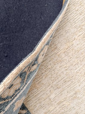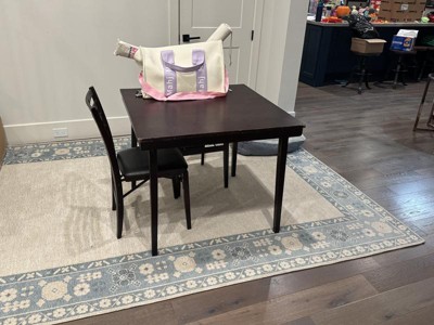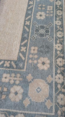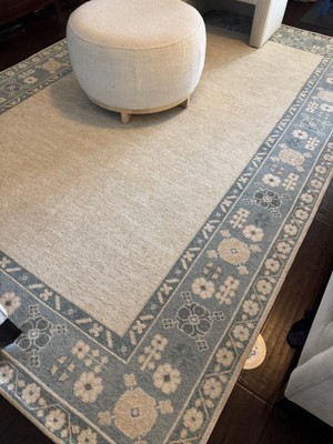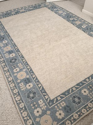 I am completely obsessed with this rug! I got this border area rug in the 7x10 foot size, blue color. Love this blue color as it leans more towards the blueish grey shade. It’s a good color tone that adds enough color, but still matches my more neutral design aesthetics. It is everything I hoped it’d be when I ordered it. I love the detailed design of the rug’s border and the muted, abstract design print of the rug’s border. Those details make the rug stand out while still looking subtle in my guest bedroom. The construction of the rug makes it feel soft and plush on the feet. Although the rug looks fairly thin, it feels well cushioned. I like the stitching on the edges of rug as they are well done and add to the elevated look of this rug. It’s also easy to vacuum and I like that it doesn’t get caught up on my vacuum. The quality of the rug is great and doesn’t shed. I did notice a little bit of an odor while unrolling the rug, but it dissipated after I aired it out for a day. The rug also completely flattened out by the next day. I highly recommend this rug if you’re looking to elevate your home with a rug that looks luxurious and high end look at a better value.