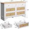 Introducing our 7 Drawer Dresser, a stylish and functional storage solution designed to enhance any bedroom or living room space. Measuring 47.3 inches wide, this wood chest of drawers combines classic design with modern practicality. Crafted with a sturdy base and featuring a unique rattan drawer panel, this dresser offers both durability and aesthetic appeal.