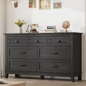 With seven generously sized drawers, this dresser offers substantial storage capacity for clothing, linens, accessories, and household essentials. Each drawer provides deep storage space, allowing for efficient organization of various items. The spacious top surface measures 54 inches in length, providing an ideal platform for displaying decorative accents, photographs, lamps, or other personal items that complement your decor style.
