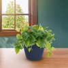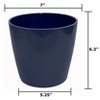 Worlds first Bamboo Fiber self-watering pot, this 7" Indigo Round self-watering pot is made from sustainable, biodegradable, all natural Bamboo Fiber and corn starch. Plants thrive in this natural Bamboo Fiber pot that is plastic free. The soil is better aerated by the unique water well in the base, allowing better nutrient management, helping the plants grow healthy and strong. These pots should be treated like ceramic, suitable for use in hot or cold climates inside or outside. At initial planting, water from the top until water is just below the overflow. Then periodically check the water level in the base and add water to the well from the bottom access or from the top of the pot. The soil draws water up from the well as needed using capillary action just like a wick. No more overwatering, strong healthy plants is the result! Everyone gets a "green thumb" growing in bamboo pots and just by keeping water in the well! When you are finished with your pot just break it up and put into your compost bin. Over time the material will degrade back to nature.test