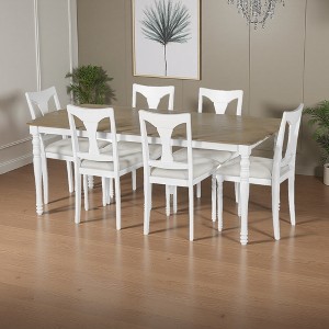 - COUNTRY FARMHOUSE STYLE: This well-designed dining set embodies cozy, rustic country farmhouse charm—perfect for family and friend gatherings. The 60-inch standard tabletop easily seats 6 people, creating a joyful dining atmosphere.
