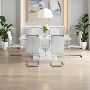 Silver Stainless Steel Accented Legs: The U-shaped table legs are enhanced with shiny silver stainless steel decorative strips, which not only add a touch of modern luxury but also boost the legs' wear resistance. The metallic accents elevate the set's visual appeal, making it a stylish focal point in your dining area.